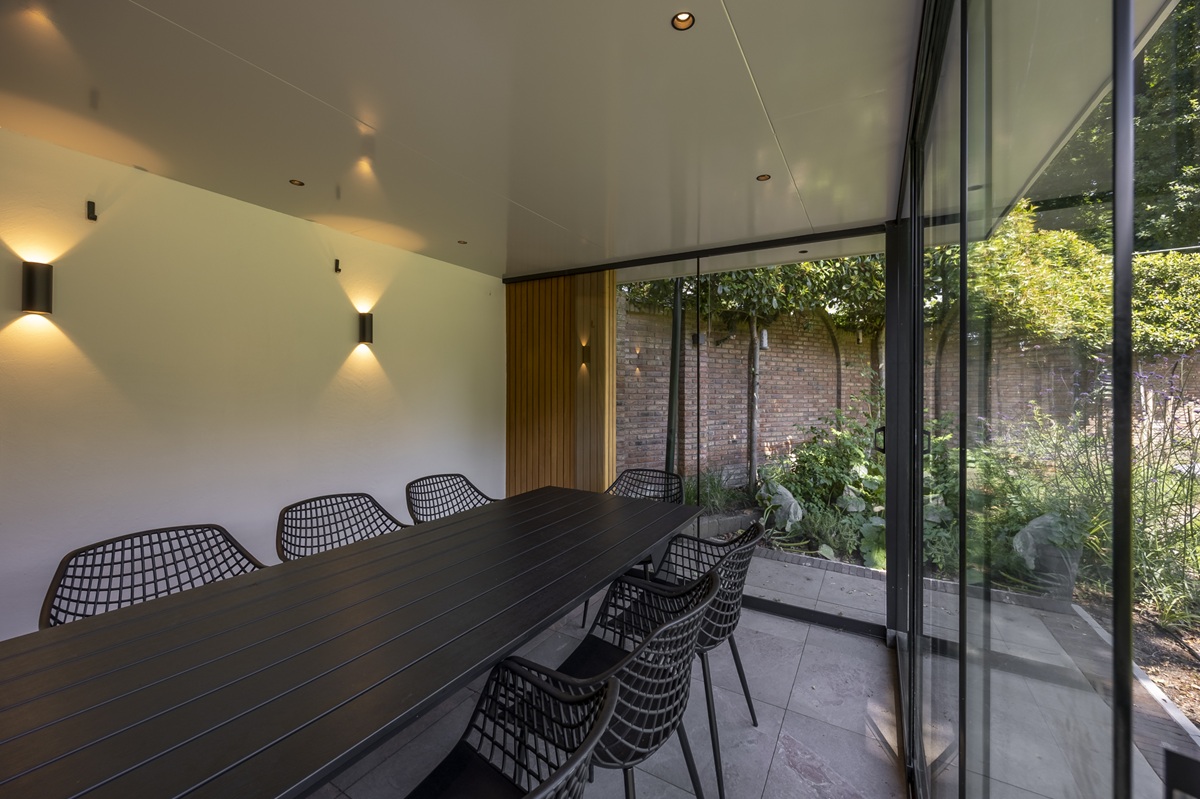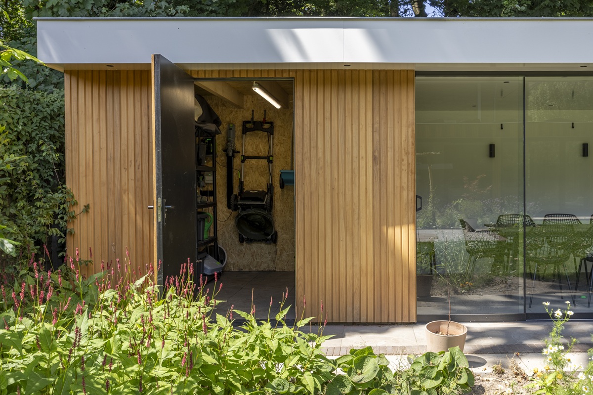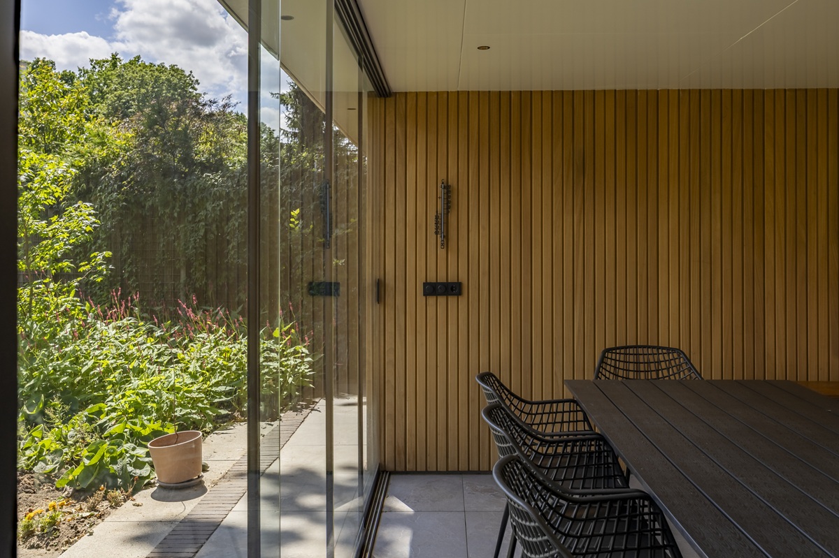 In de achtertuin hebben we een veranda gerealiseerd met een aangebouwde, functionele berging. Deze biedt extra comfort en opbergruimte zonder afbreuk te doen aan de uitstraling. Materialen, afwerking en detaillering zijn zorgvuldig gekozen en uitgevoerd, met aandacht voor onderhoud en langdurig gebruik. Een degelijk en samenhangend project, van ontwerp tot oplevering, door Extrivo Buitenruimtes.